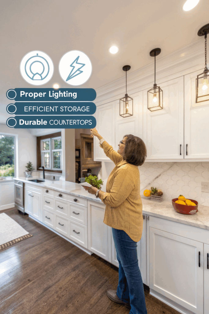 Lighting is often overlooked but crucial. Use a mix of overhead, under-cabinet, and pendant lights. When replacing appliances, look for energy-efficient models that save space and money.