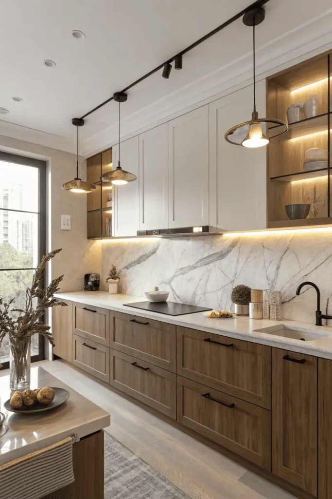 ✅ Layer your lighting — combine ceiling, under-cabinet, and wall lights for depth.